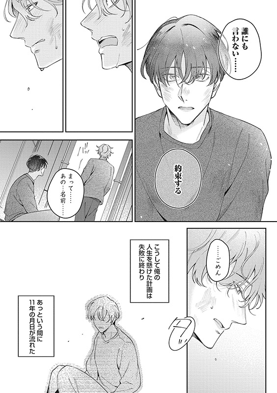 とある罪により11年間の逃亡生活をおくる今戸弥六。そんなある日、出会い頭に謎の男から突然キスされたと思ったら、次に目を覚ました時には知らない部屋に…!八田俊琉というらしいその謎の男はどうやら昔、今戸と接点があったようで…?