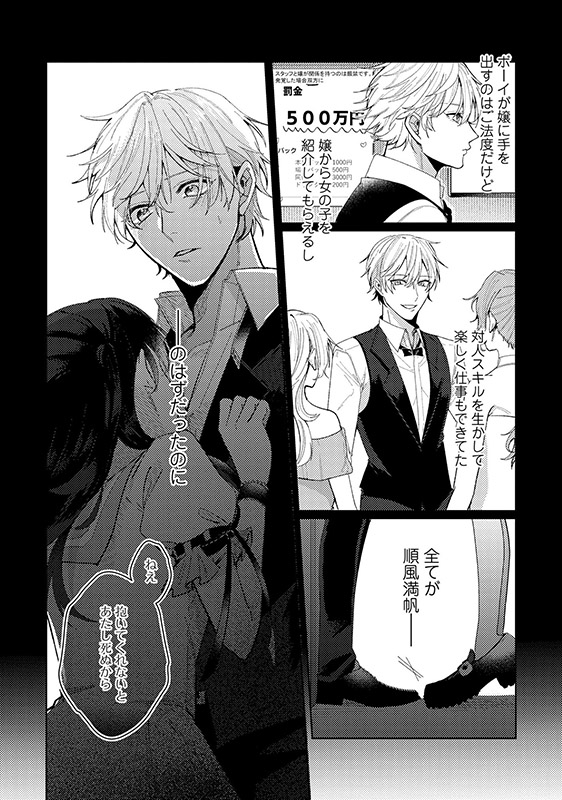 嬢に手を出したスタッフは「罰金500万or相応の処罰を受ける」ルールで、大金が払えない直央はゲイビデオに出演することに。