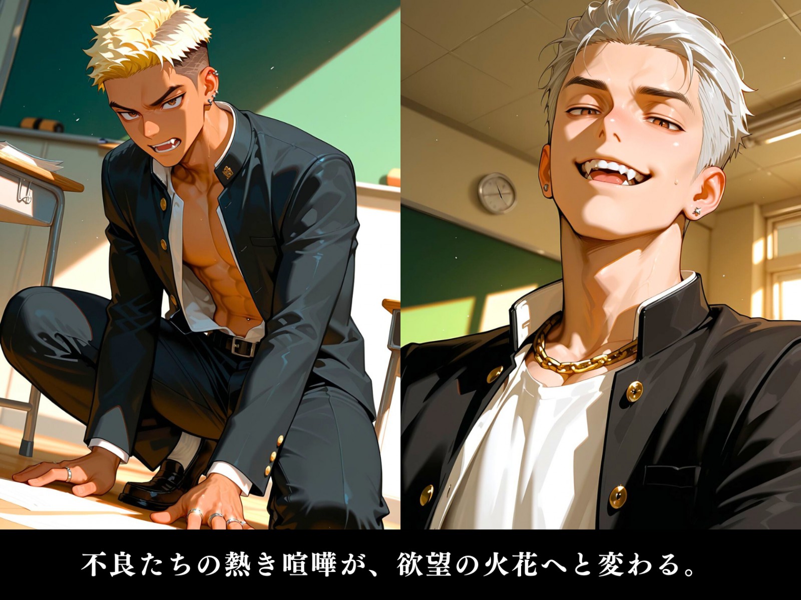 荒い息遣いと熱い視線に不良たちの肉体が激しく絡み合う。