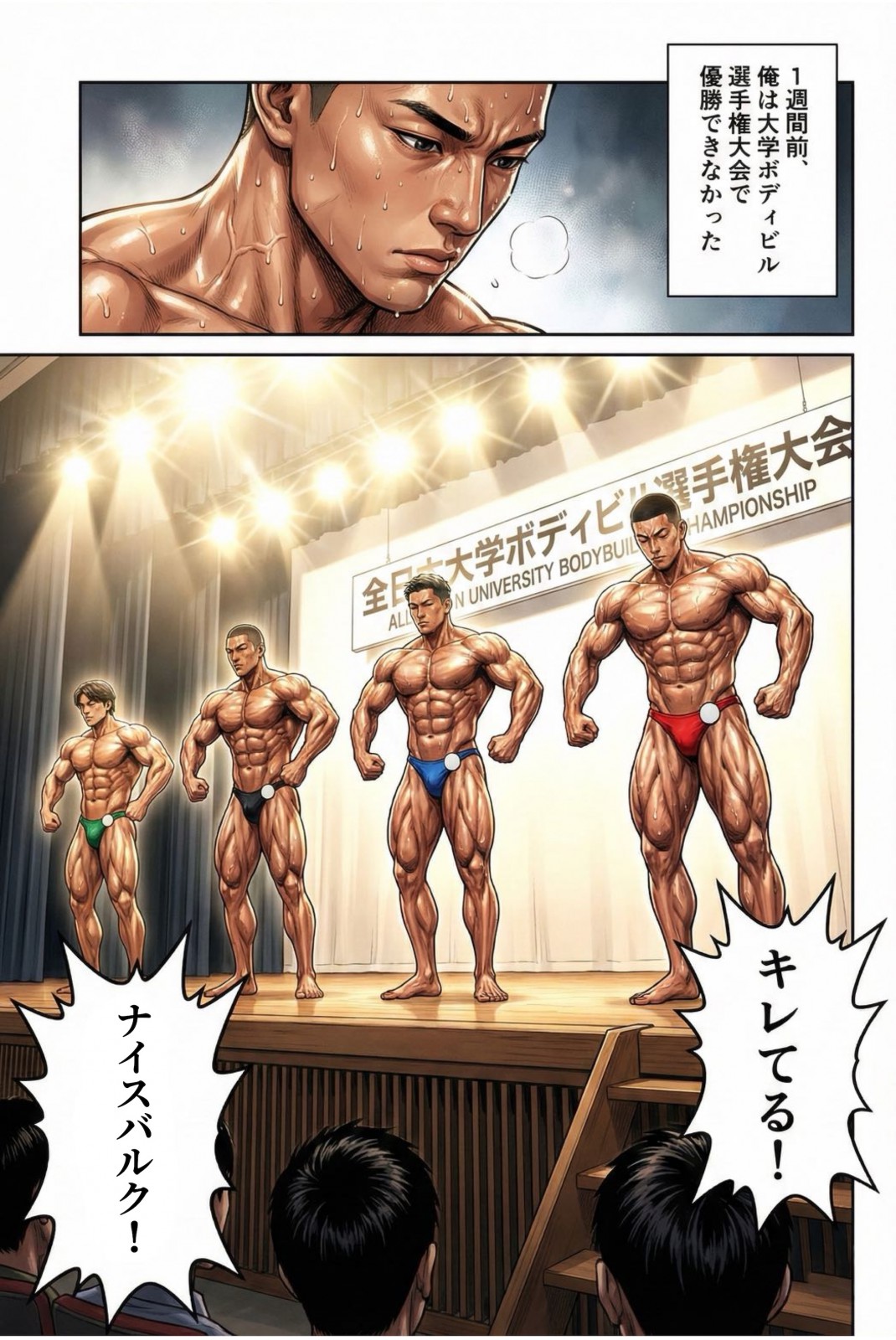 名門大学ボディビル部。歴代主将達が築き上げてきた連覇を止めた戦犯として、OB会の針のむしろに座らされた主人公。失意の彼を拾ったのは、かつての絶対王者・東郷。