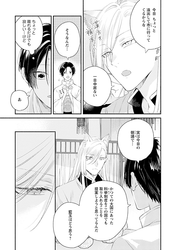 大陸東部の小国・翠(スイ)にて捕らわれた彼だが、実はそれも全て計算のうち。「ある目的」を果たすため、上手く宮廷への潜入に成功したのだった。病で倒れて以降、人が変わったように穏やかになったという翠国の若き王のもとに近づくも、王から告げられたのは予想もしない「お願い」で――!?