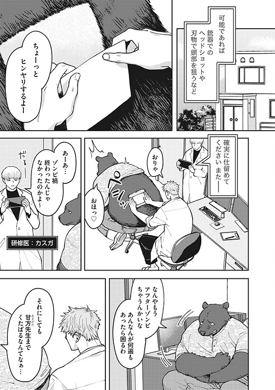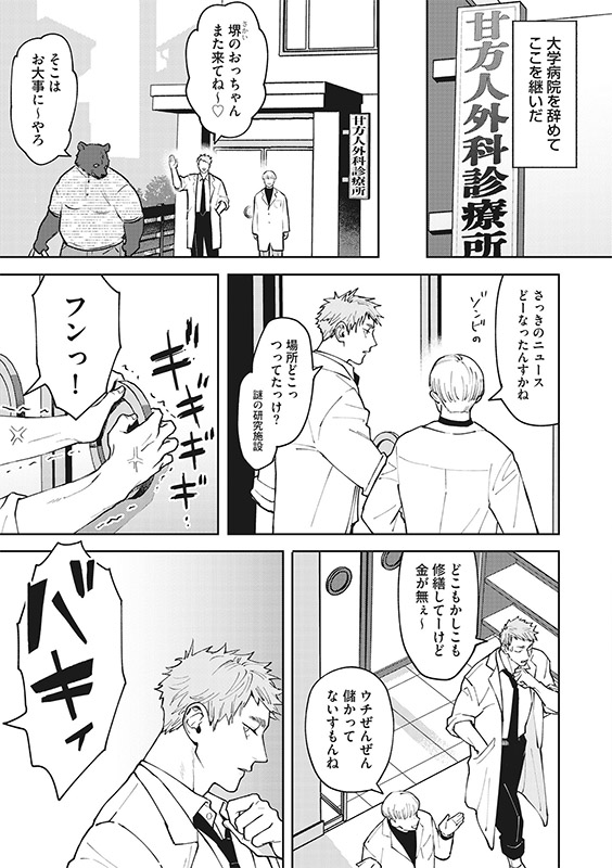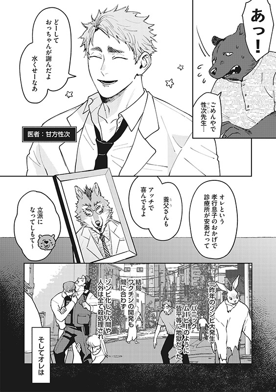 そんなある日、ゾンビ研究所の爆発事故のニュースとともに、人外専門の町医者・甘方性次のもとに“それ”は現れる。