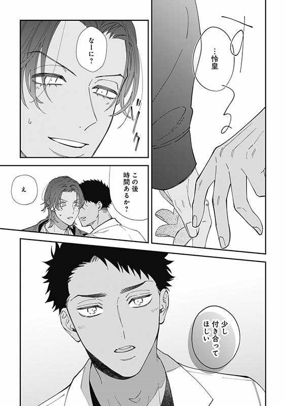 久しぶりの再会に胸を躍らせていたが、堅心は怜皇のことを覚えていないようだった。仕方がないので開き直って自己紹介をすると、急に堅心が近づいてきて____。