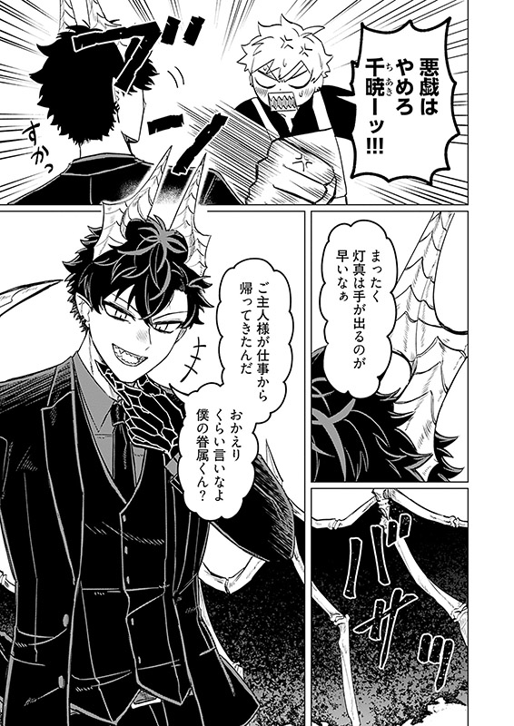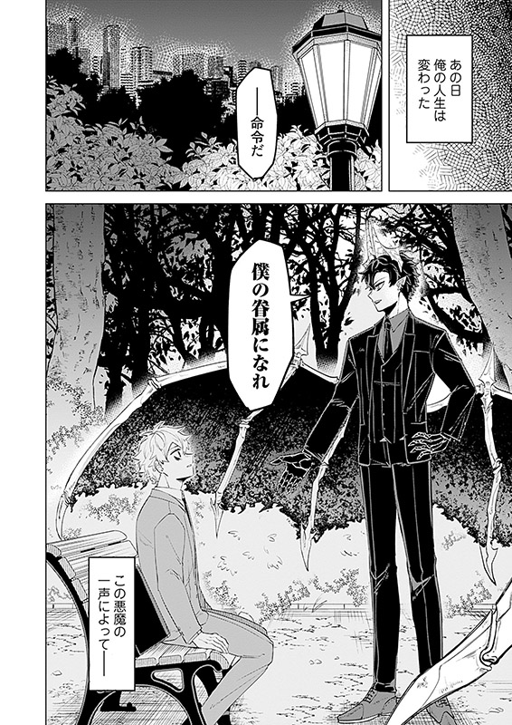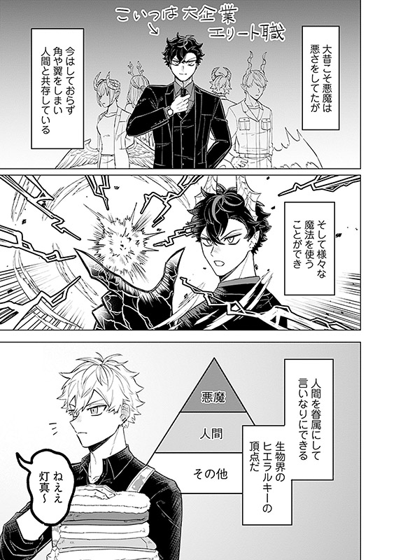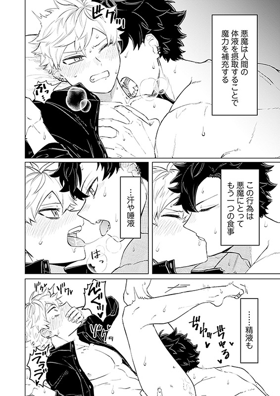 悪魔と人間が共存する世界。かつてあった対立はないものの、悪魔が持つ能力は凄まじく、様々な魔法を使うことができ、人間を眷属にすることもできる。いわば生物界のヒエラルキーの頂点だ。そんな悪魔・千暁(ちあき)の眷属になった俺は「魔力の補充」という理由で毎晩、体液を摂取されている。あんなところやこんなところを舐められて…。