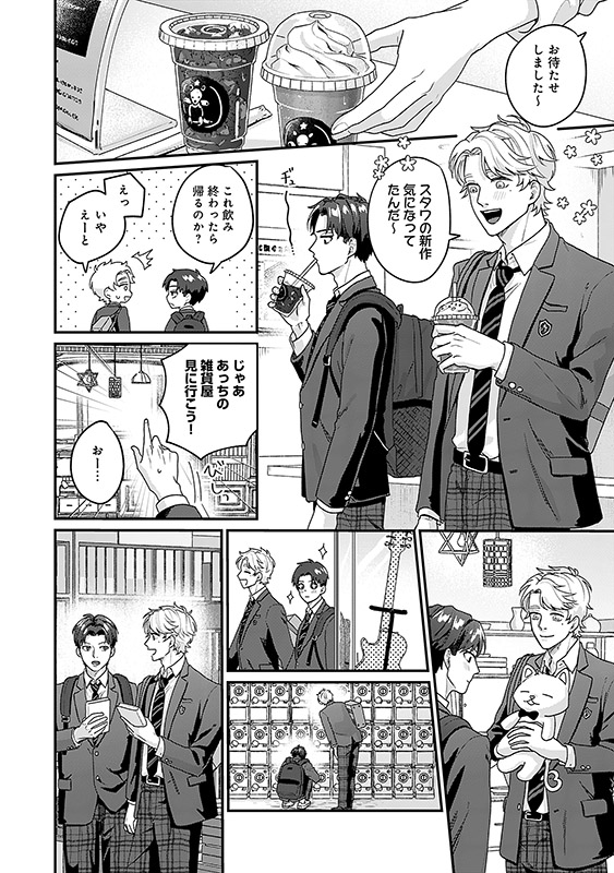 登校して早々、猫実の爽やか王子スマイルで挨拶をかまされたじろいでいると、猫実の友達で高身長イケメンの蛍夏にも構われ、陽キャオーラに困惑する。