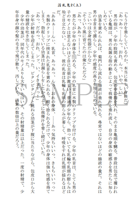 嘆鳴村で行われている淫鬼祭。嘆鳴村に住む少年【祭】は、歪んだ儀式と常軌を逸した村人たちによって【隷子】として○○されている。淫鬼祭第二弾。本作品は淫鬼祭2<下>に続く物語となっております。