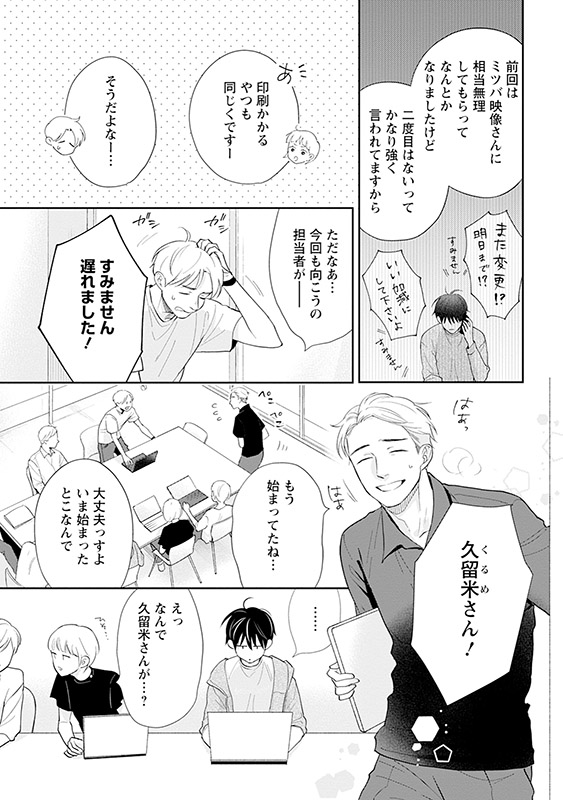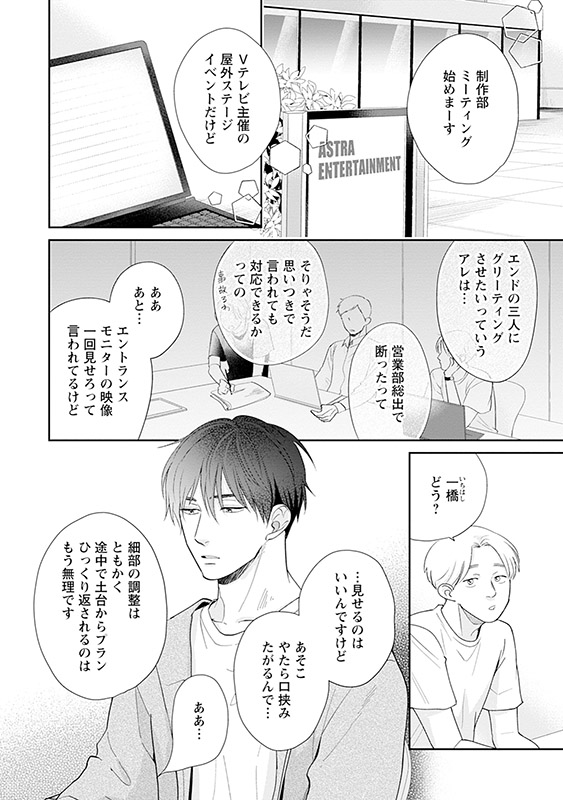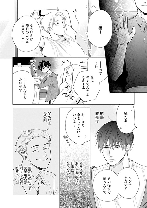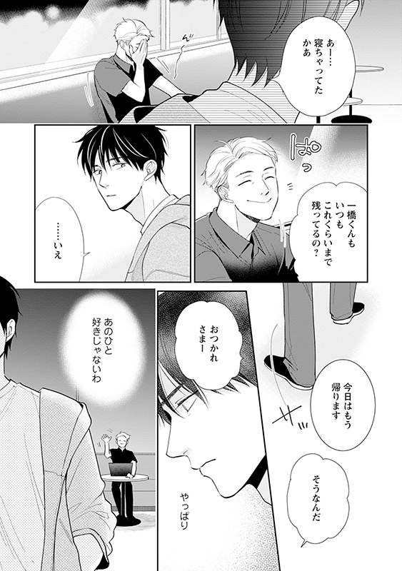 芸能事務所で働く一匹狼な会社員・一橋は、社交的で陽キャな先輩・久留米が苦手だった。しかし、同じプロジェクトで仕事をする中で、ふいに久留米が食べる姿に欲情してしまう。