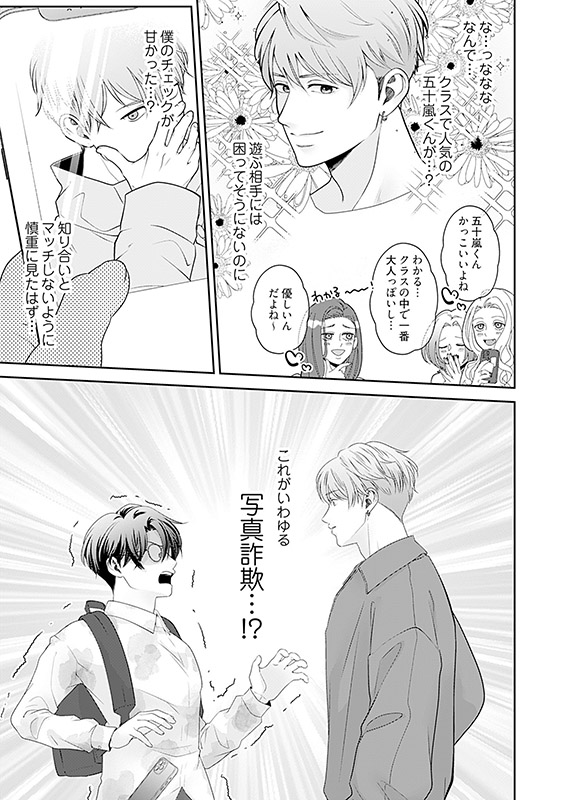 友達が恋人を作っていく中、20歳になっても未だにそういった経験のない市川は焦りついにマッチングアプリに手を出すことに!!幸運にもすぐにマッチングし待ち合わせ場所に向かうとそこにはクラスの一軍イケメン・五十嵐くんがいて…!?どうにか逃げ出そうとするもなぜかホテルまで来てしまう展開になり…陰キャオタクくんの暴走青春ピュアラブストーリー開幕です!!【フィカス】