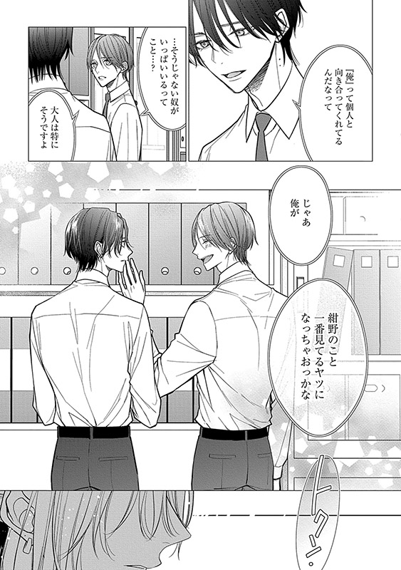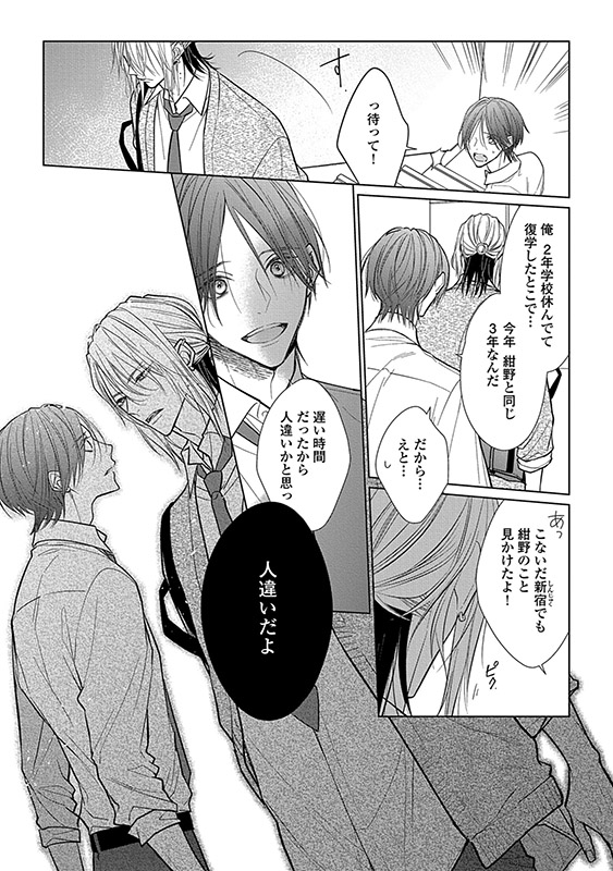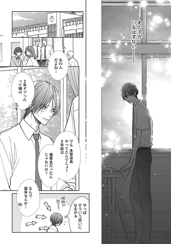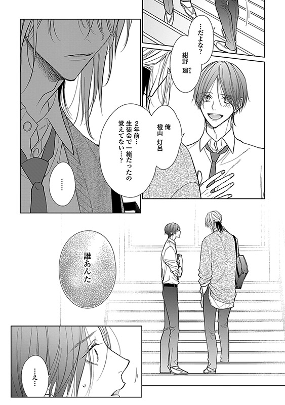 だが優等生で純粋だった昔の面影はなく、誰とでも関係を持つ遊び人に変わっていた。距離を縮めたい灯呂だったが軽くあしらわれ、思わず「俺だって男に抱かれて遊んでる」と口走ってしまう。その小さな嘘で、廻の気を引こうとするが…!?