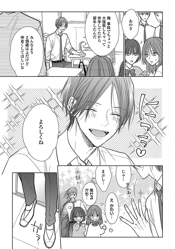 青春やりなおしブルームラブ事故で2年留年したのち復学し、2歳下の子たちとクラスメイトになったハタチの学生・橙山灯呂(とうやまひろ)。