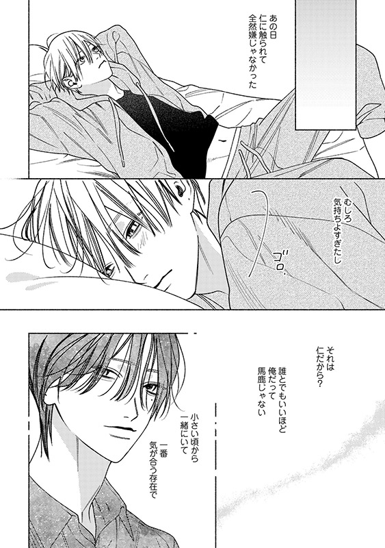 打算的でチャラくて、でもちょっと流されやすい朝陽(あさひ)と、そんな朝陽に長年執着しながらも、おくびにも出さないクールな幼馴染・仁(じん)。