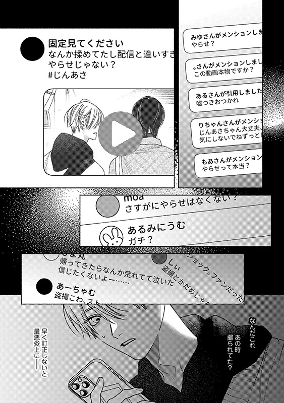 だが人気が出るにつれて生配信のコメントは過激に。「いちゃいちゃ見せて」「キスして」――など投げ銭は高額に、要望はエスカレート! 乗せられた朝陽は仁に“フリ”でキスをしようと提案するが…!?