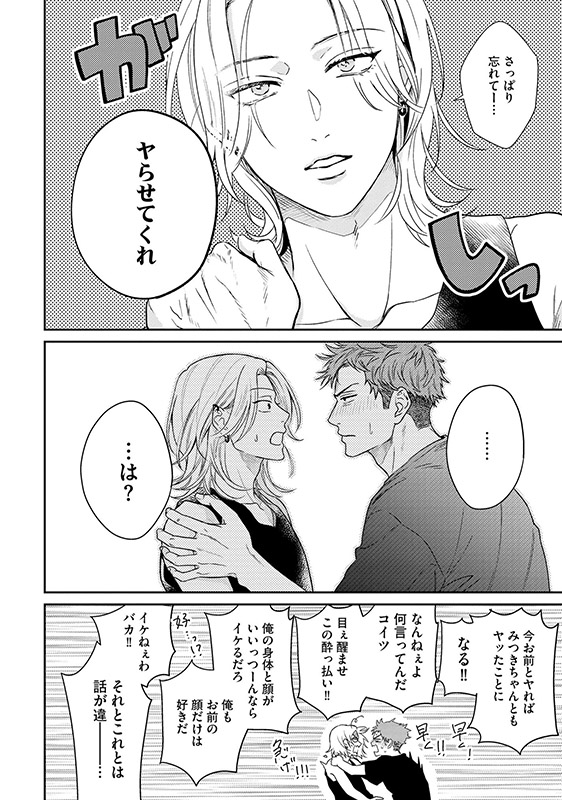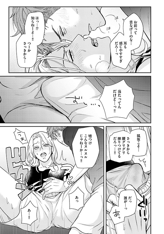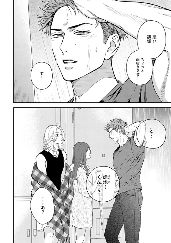 ある日、狐坂がセフレと家でいちゃついているところに虎地がたまたまやってくる。