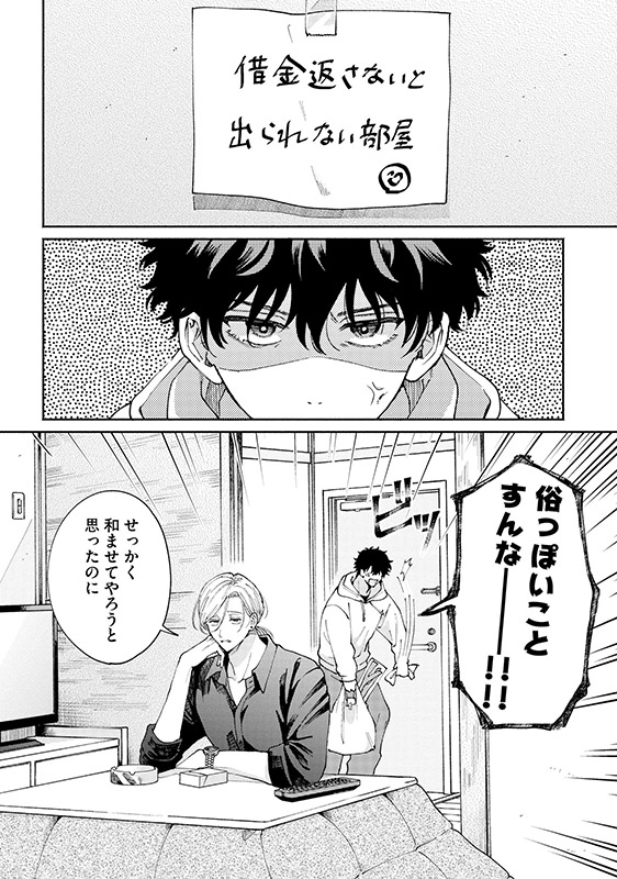 挙句の果てにはトイレでこっそりオ×ニーしている一部始終を開に見られていて――!?ひねくれ世話焼き取り立て屋×ほだされツンデレ大学生の異質な同居生活スタート