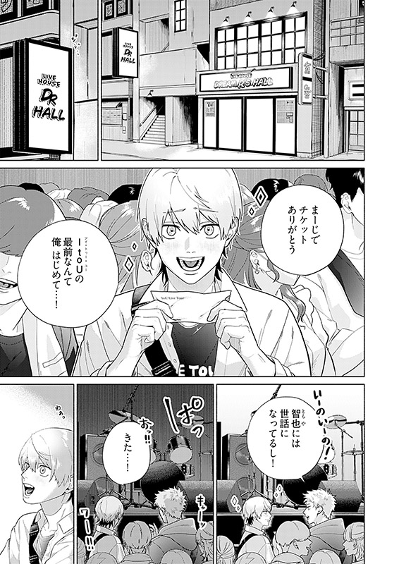 大学生の智也のあこがれは、人気バンドのベーシスト・真澄さん。ある日のライブ中、真澄さんからピックを渡される神ファンサを受けてしまった! しかも裏には電話番号が書いてあって…!? 【フィカス】