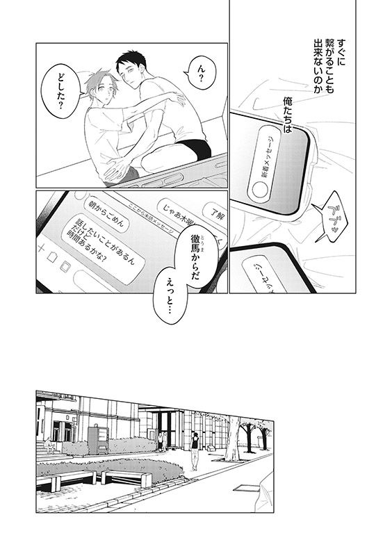 怯えていたはずの“つがい”に、徹馬は初めて自分の意思で触れてみようとする。一方、β同士の恋人である親友の奏と弓削は、「運命」を巡る感覚にすれ違いを抱えていた。