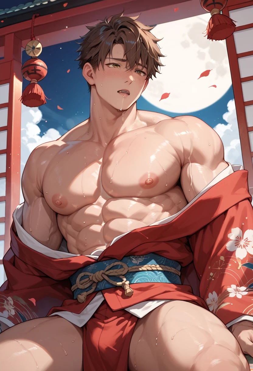 基本は着物を肌蹴て雄っぱいを突きだして、喘いでいるガチムチで、ちょこちょこ下半身露出や、正常位、騎乗位などの描写あり。モザイクがはりきって仕事をしているR18。色黒が半分。※遠近法が変だったり、手がおや?っとなっていたり、違和感のある描写があるけど、目を瞑ってもらえれば。