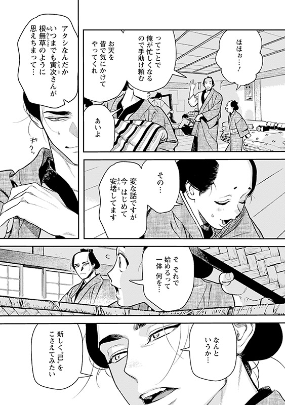 7年越しの葛藤は晴れ、料亭・千枝屋の奉公人たち公認の仲となった寅次と八重辰。それに報いようと、寅次は新たな仕事を買って出る。八重辰も店の主人、恋人、そして父としての想いを深めていく。お天との絆もより強いものとなり、どんな困難もこれで乗り越えてゆけると思っていたが…?