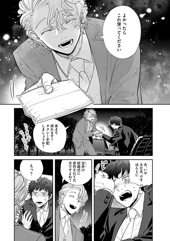 長年片想いをしている、親友の結婚式に学生時代からの親友で片想相手である宝井の結婚式の帰り、福吉は涙を抑えられずに公園で一人泣いていた。