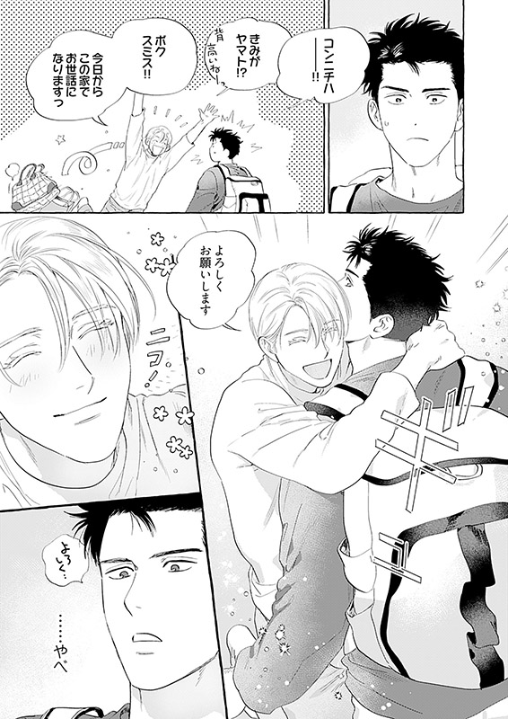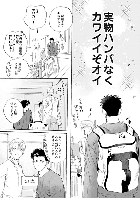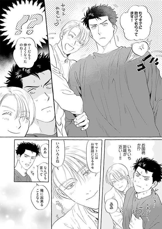 ところが、焦る大和とは裏腹にスミスは興味津々!どうやらスミスの国は性の規制が厳しくて、こんな“気持ちいい”やり方を知らないらしい。母国ではタブーなアレコレを教えてほしいとせがまれて!?体温を感じるハグも、キスも、触り合いも、その先も―…。