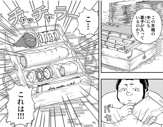 清太郎の部屋で木箱を見つけ、そのフタを開けると
