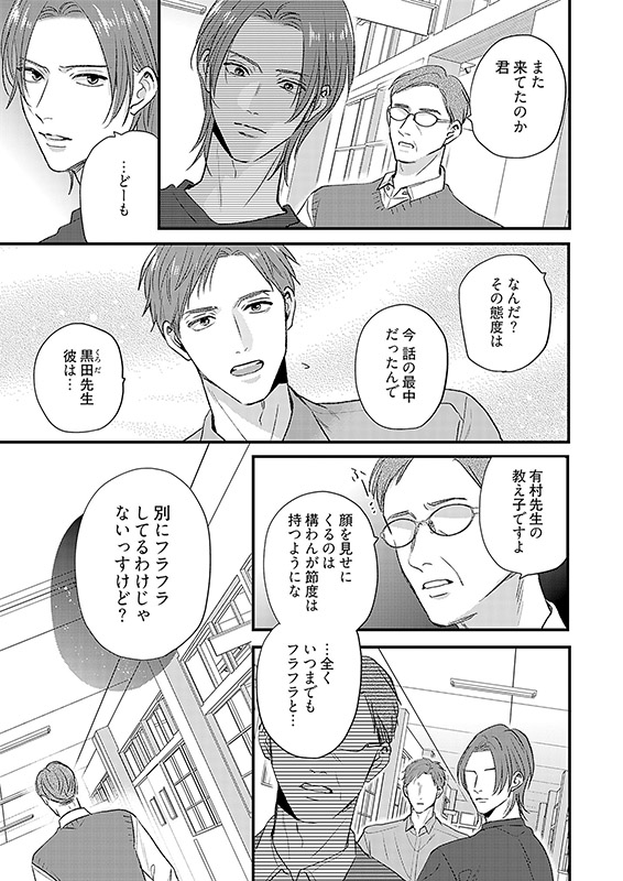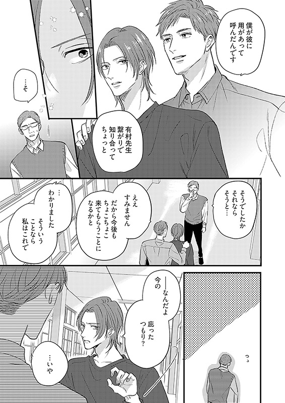 同僚教師や生徒から好かれ、抜群のコミュ力を自負する教師の里見には、苦手な男がいる。カタブツで周囲から遠巻きにされてる、隣クラス担任の有村だ。ルールに厳しく、プライベートな会話や誘いを一切受け付けない有村は、まさに鬼門の相手。そんなある日、「有村先生の背中には龍がいる」という不穏な噂を耳にした里見は有村と視聴覚室で二人きりになって…?