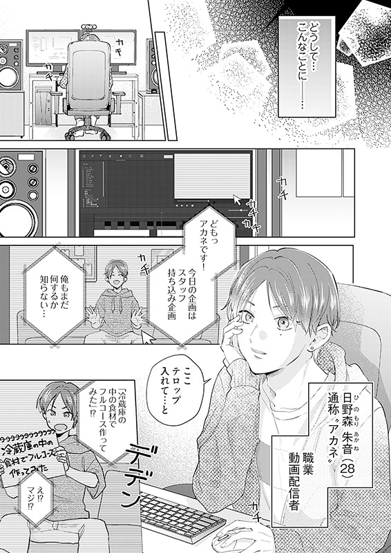 「ポチ」とは登録者数50万人超えの毒舌キャラで有名な配信者だった。しかし、相手は顔出しもしておらず、おまけに無愛想キャラで通っている…、人気にあやかろうとコラボを受けたものの当日不安になったアカネのもとに現れたのは、超絶イケメン男子で!?