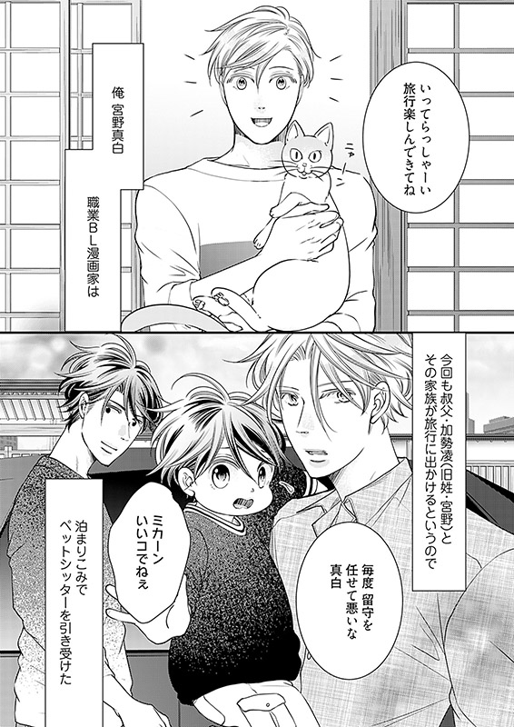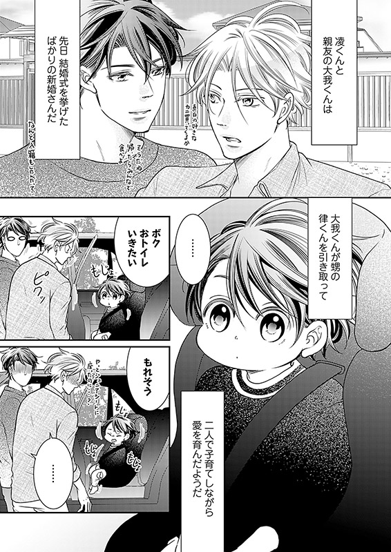料理上手で○○好き。結婚願望もあるのに【とある理由】で、いまだ独身な三十路の建築士・宮野凌(みやの りょう)。ある日、火事で自宅マンションが水浸しになってしまった親友・大我(たいが)の頼みで、大我が引き取った甥・律(りつ)と3人で同居生活することに。かわいい律の世話を焼くのは楽しいけど――学生時代から凌を想い続ける大我の過剰なスキンシップに振り回される毎日で!?!?