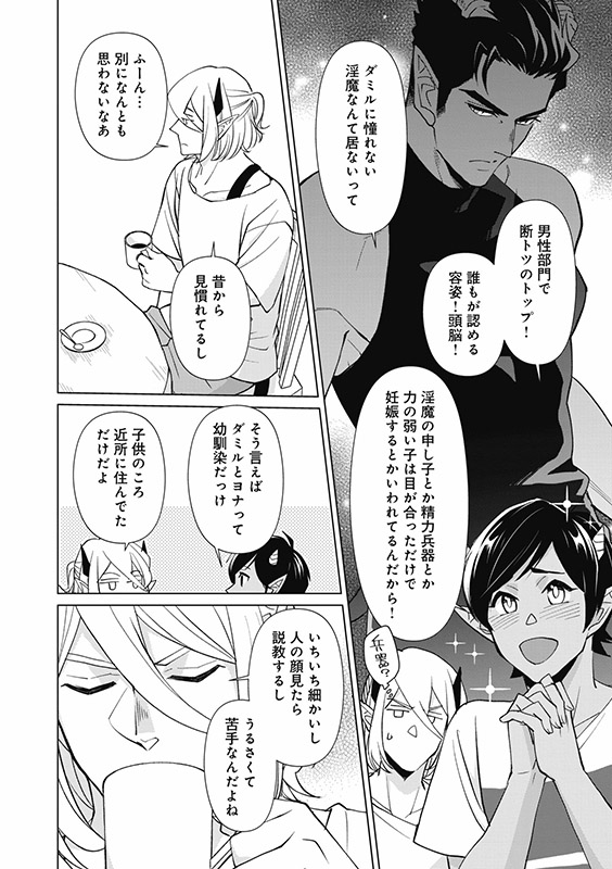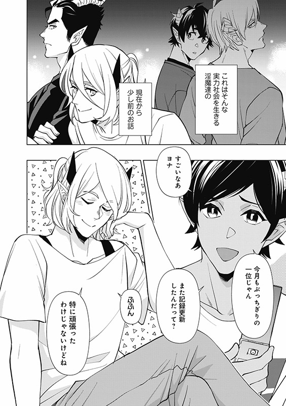 その実態は、人間の膨大な欲を性行為によって吸収し様々なエネルギーに変換して生活している完全実力主義の世界だった!男性を相手にする淫魔の花形として活躍していたヨナは、同僚のタルナに「ヨナがいたらどれだけ派遣行っても全然一位になれない」と評されるほどの実力の持ち主。