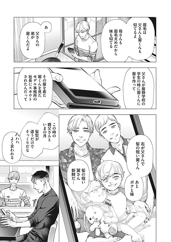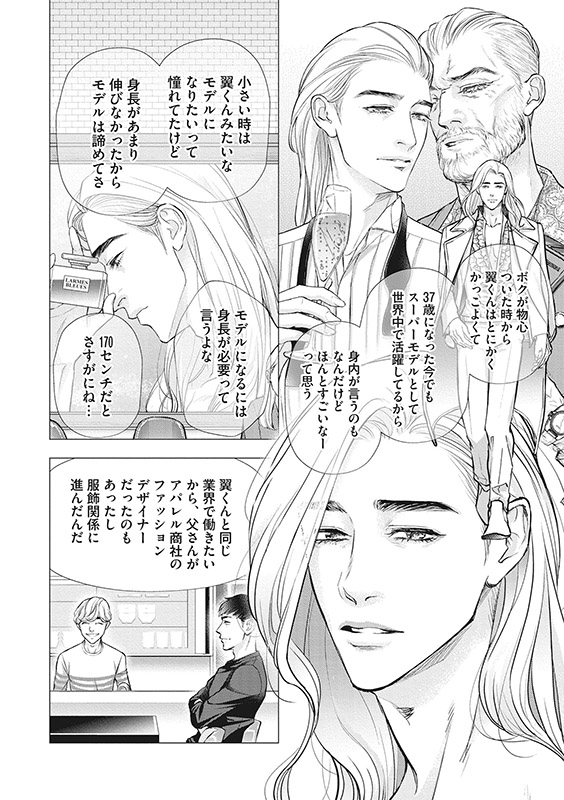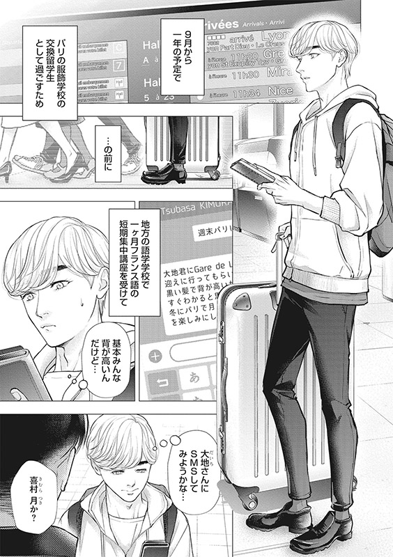パリ。服飾学校の交換留学生・喜村月を迎えたのは、叔父・喜村翼の留守宅を預かる料理人・佐東大地。月は翼に憧れ以上の気持ちを抱いていて、スーパーモデルである翼のために服を作る日を夢見ている。翼には想い人がいるようだが、それは大地ではないらしい。なのにある夜、月は翼と大地のセックスを見てしまう…!