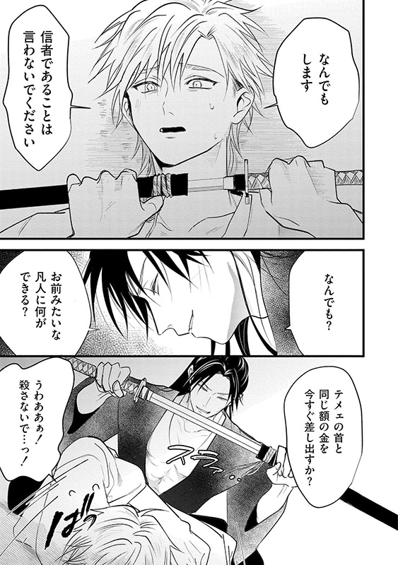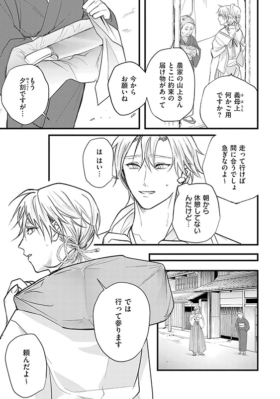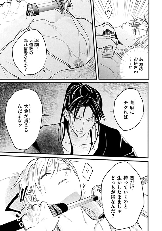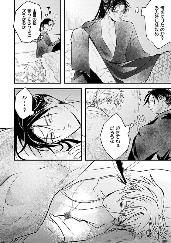 夜景を一晩泊めることに。深夜、目覚めた夜景は時貞の胸元に首飾りを見つける。