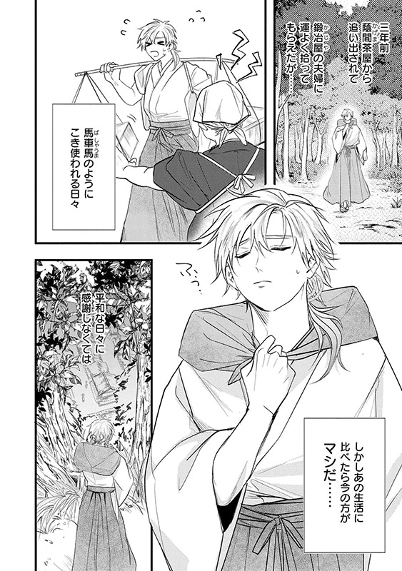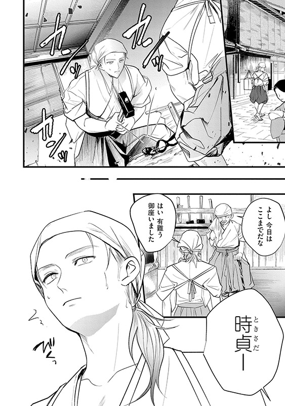 その後拾ってくれた鍛冶屋夫婦のもとで鍛冶職人として生活していた。ある日、使いの途中に行き倒れの侍・夜景(やかげ)を見つける。