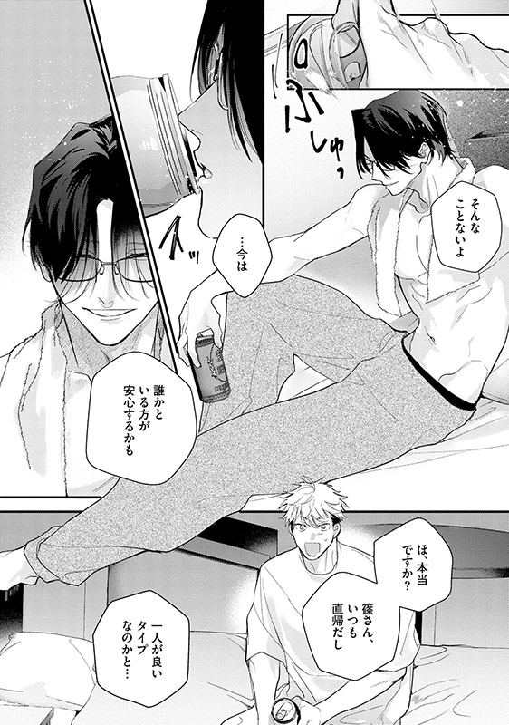 部下である夏目は、出張先のホテルで篠さんが失恋したと聞き、励ますために“なんでもする”と宣言してしまう。