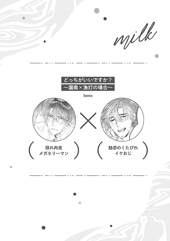 同じホスト店で働く景と隼人は、2人とも“ネコ”。ある日、仕事で嫌がらせを受けて落ち込む隼人に、景は「慰めてやる」と持ち掛けて…※『リバBLアンソロジー ~milk~』『リバBLアンソロジー ~sugar~』はどちらか一方だけでもお楽しみいただけます。