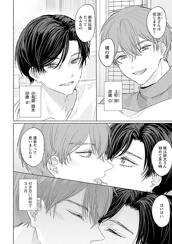 婚活パーティーを機に付き合ったαの諒太とΩの玲。交際自体は順調だけれど、だからこそ諒太は「抱かれたい」という願望を口にできなくて…・榎木えのすけ「酔いのちメロウ ~サツキ×アヤトの場合~」