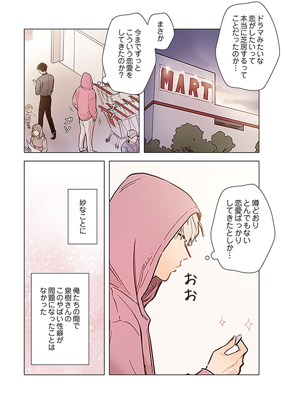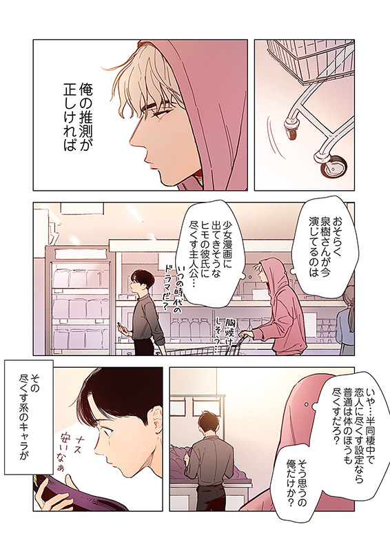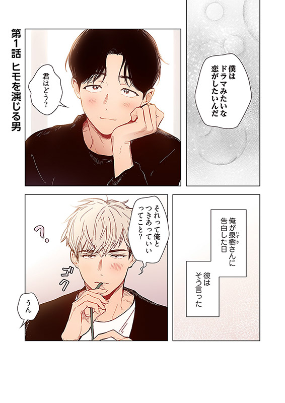 陽斗の恋人・泉樹にはあるヤバい性癖がある。いつでも陽斗は、泉樹が設定したドラマの役を演じなければならなくて、今はヒモ男の役!? 演じるのは別にいいけど…問題は今回のドラマ、なぜかキス以上は拒まれて、陽斗は欲求不満。早く泉樹を抱きたくて、ついに──!?