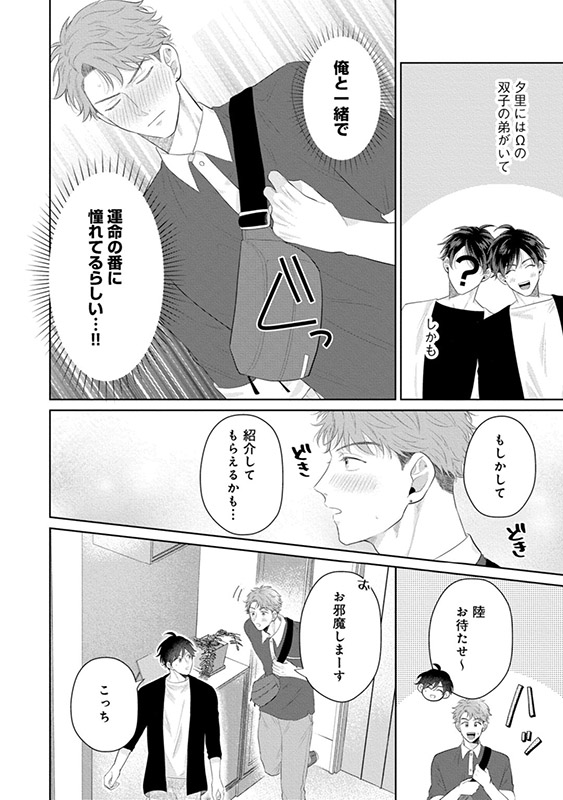 同じく運命の番に憧れていたという千景も、陸の反応にはどこか悲しそうで…?「夕里を狙ってるあんたにお願いがあるんだ。──俺を噛んでほしい」