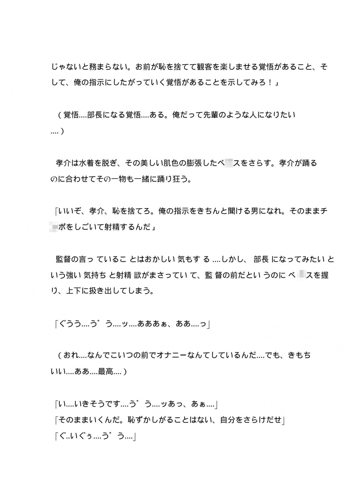 現監督になってから始まった水泳部による男のシンクロ公演。観客の中には監督指定のもっこり強調水着で踊る部員達を見定める猛獣のような男たちの姿。