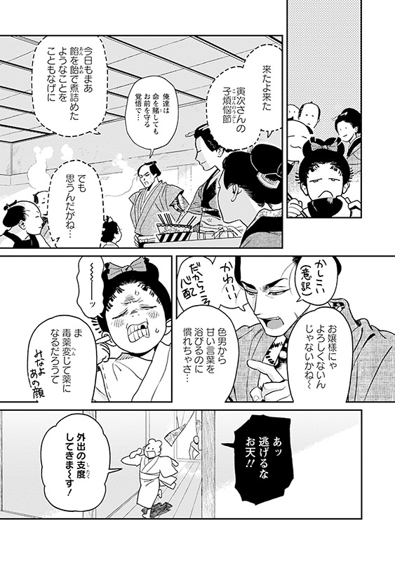 寅次と八重辰が再会してから、また7年の月日が経った。ぐんぐんと背が伸び、その魅力を周囲に振りまくお天の姿に、父親ふたりは気が気ではない。 そんな幸せな日常に浸りながらも、自分たちが実らせた初恋が娘の顔を曇らせていないかと苦悩していたある日、料亭・千枝屋が火事に見舞われ…?