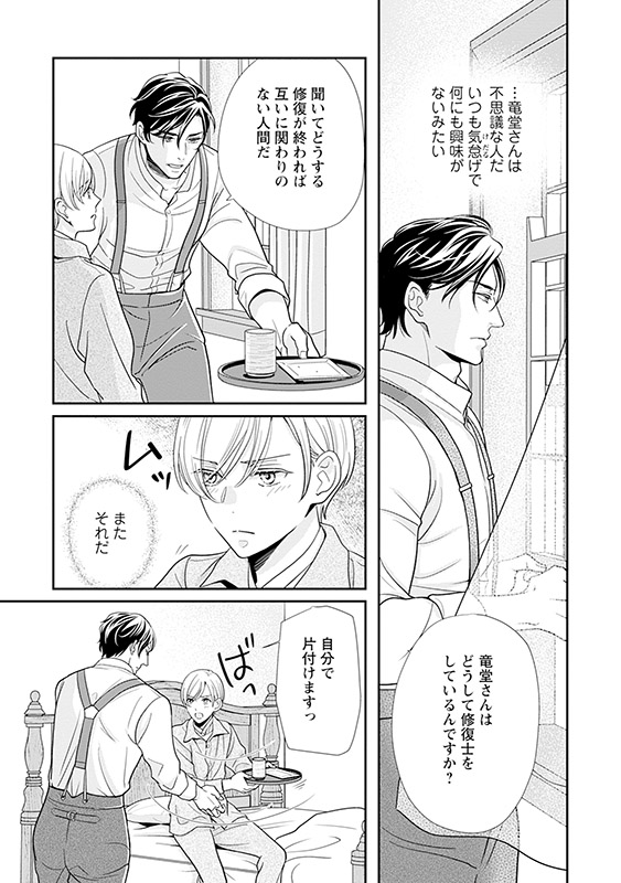 望まぬ相手と番になってしまった志真が頼ったのは、番を取り消せると噂の「修復士」で…。番を解消するため、修復士の竜堂と体を重ねる志真。