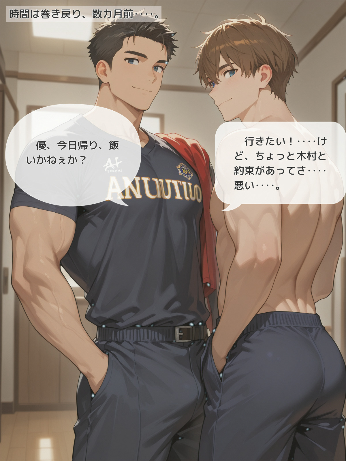 ※AI生成によるもので、キャラクターの髪型、筋肉量等に多少誤差があります。あらかじめご了承くださいませ。