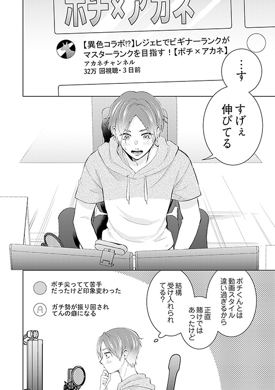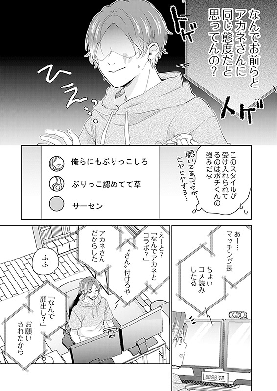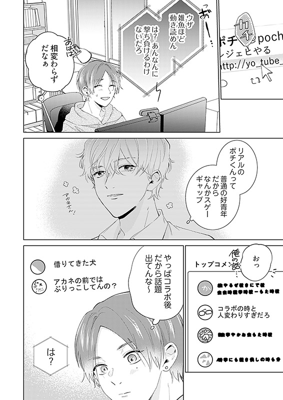 しかし、相手は顔出しもしておらず、おまけに無愛想キャラで通っている…、人気にあやかろうとコラボを受けたものの当日不安になったアカネのもとに現れたのは、超絶イケメン男子で!?