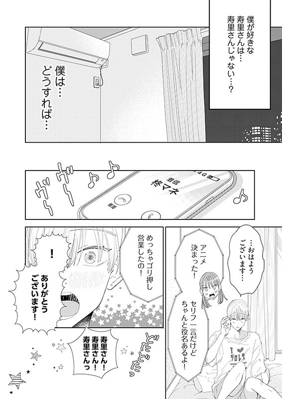 顔はいいけど演技はダメ、と、オーディションで落選続きの新人声優・ロミヲ。うまくなりたくて敬愛するナレーターの寿里(じゅり)のワークショップに行ったのに、初対面でみっともないところばかり見せてしまった! 「声優にとって大事な資質を持っているんだ。自信を持て」厳しいけれど優しい寿里の言葉に心も体も震えたロミヲは、演技指導を寿里に頼もうと追いかけて…!?【フィカス】