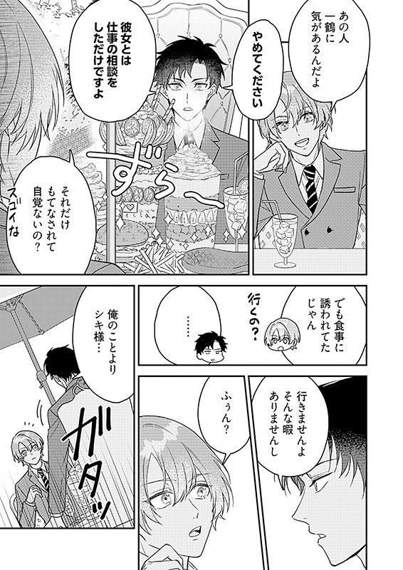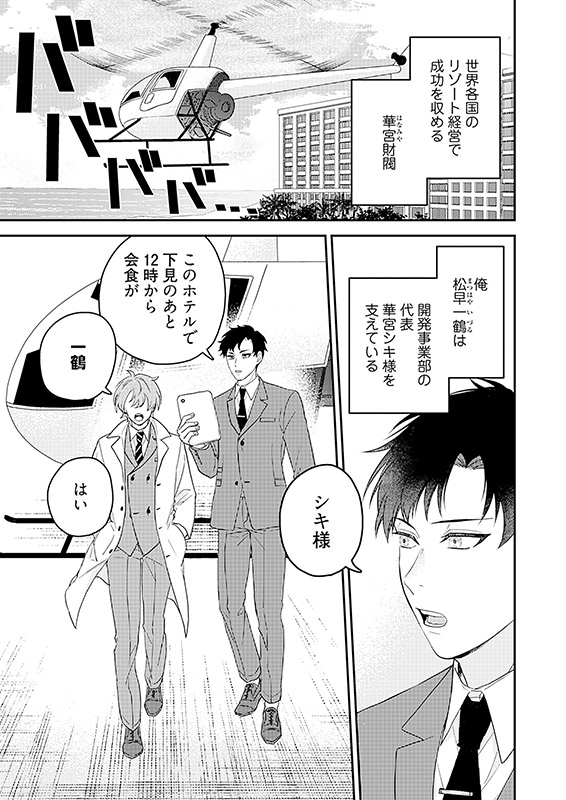 一鶴(いづる)は秘書として華宮財閥の御曹司・シキに仕えている。才気煥発で眉目秀麗なシキには、男遊びが激しいという悪癖があった。ある夜、部屋を訪れてきたシキから一鶴は体を要求されて─…!?【フィカス】