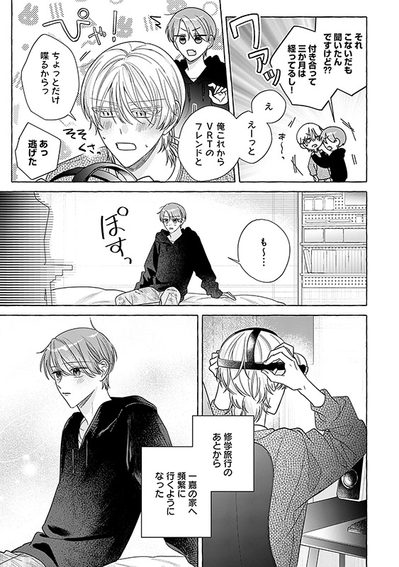 ジェラシーが爆発してしまった鳴海はVR上で友達と話している一嘉の足の間に潜り込み、ズボンのチャックをさげて——。大人しい彼氏の雄の顔にたじたじ…!