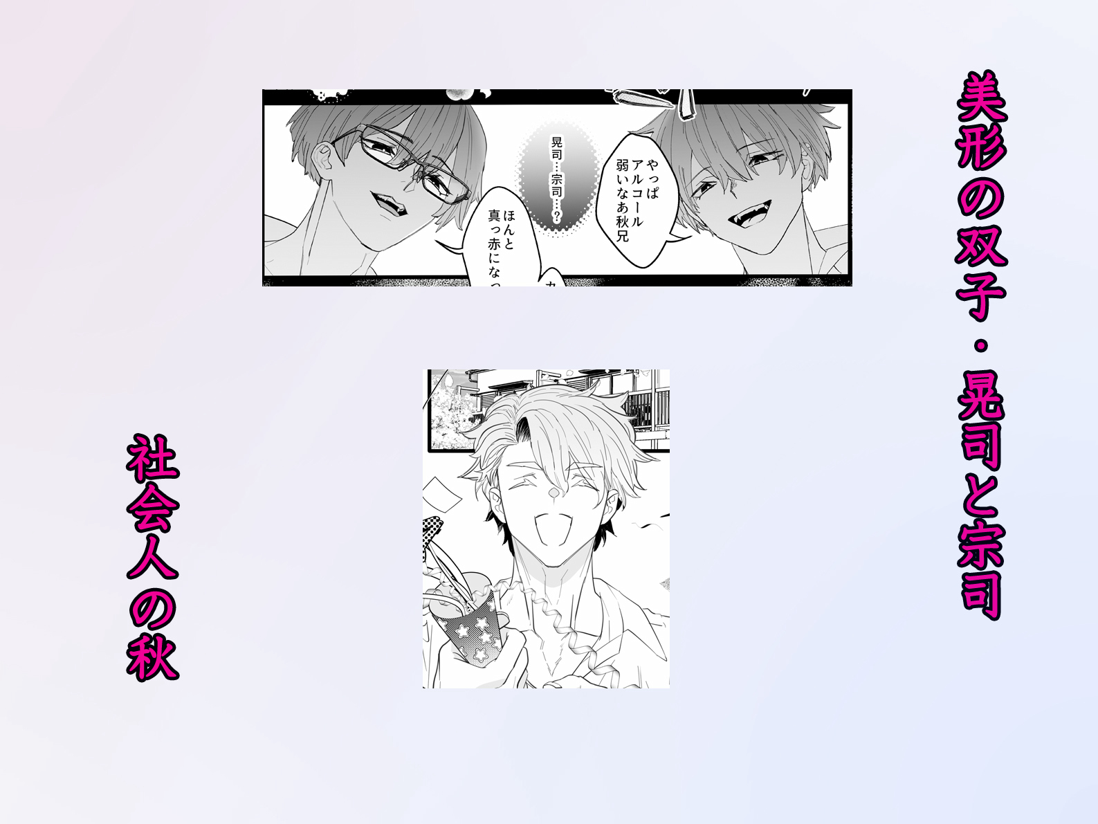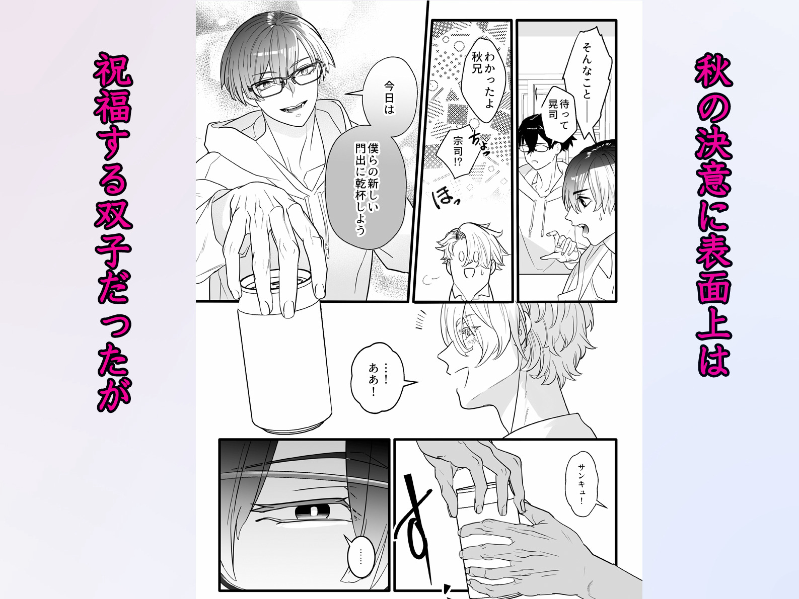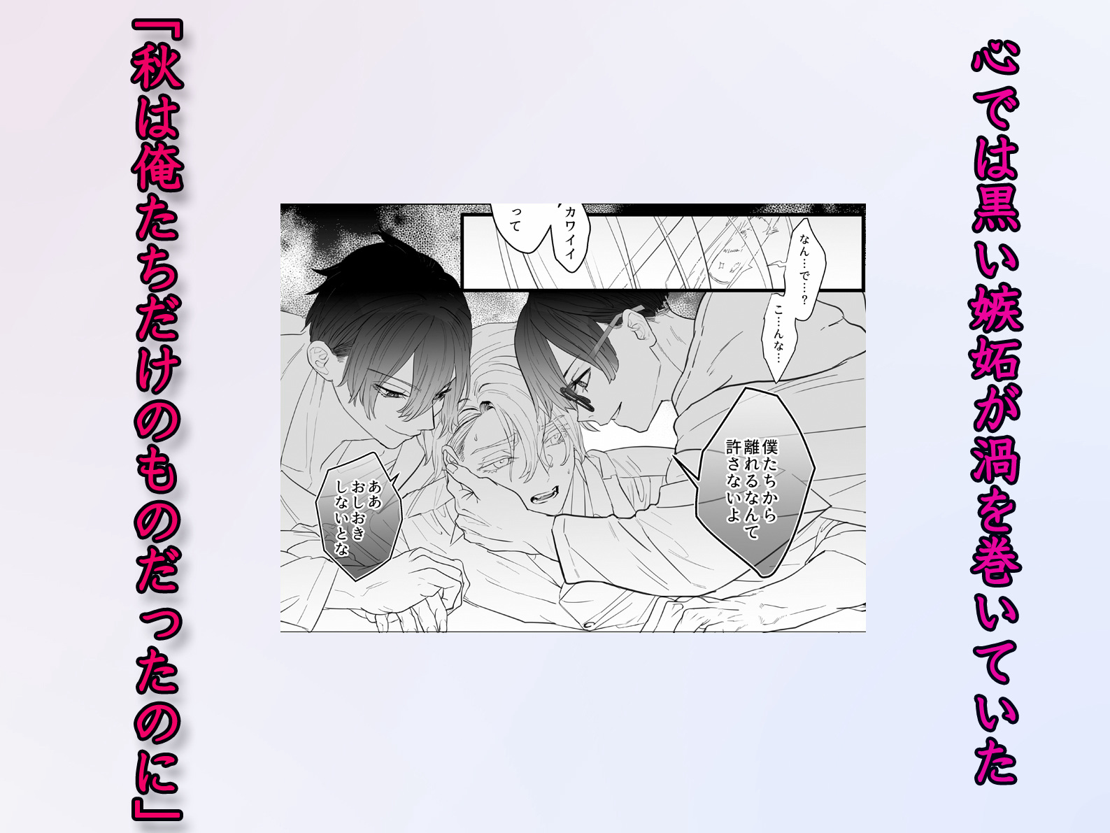 秋の身体は、美しく成長した双子の熱い指先と舌に、次第に抗えなくなっていく。「秋は俺たちだけのものだよ」