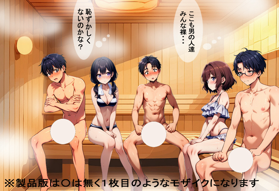 男だけ裸で女は水着着用のサウナの話です。