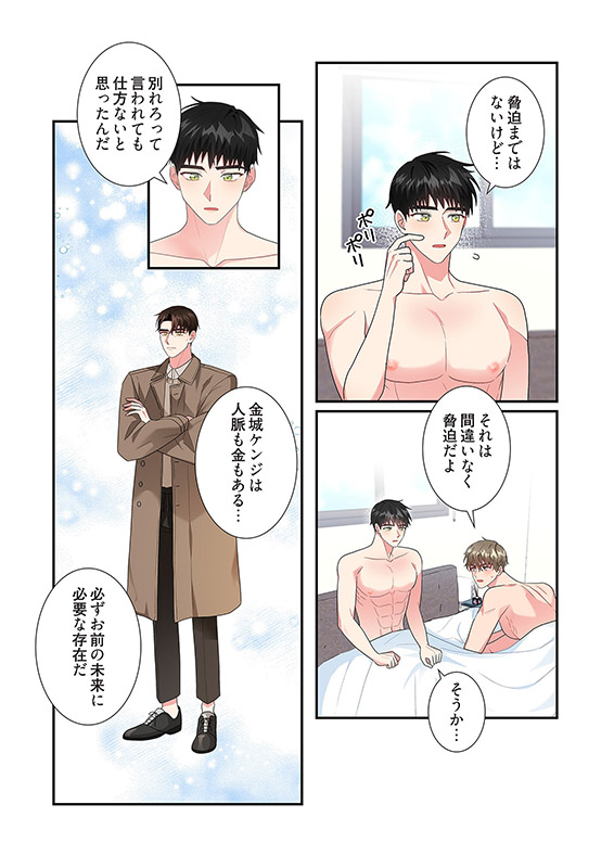 ソファに座る剛のすぐ隣に腰を降ろすイケメンの距離感に、気まずい空気を感じながらも思わずその美貌の横顔に見惚れてしまう。するとイケメンに突然押し倒され――!?