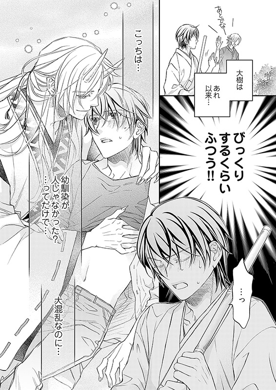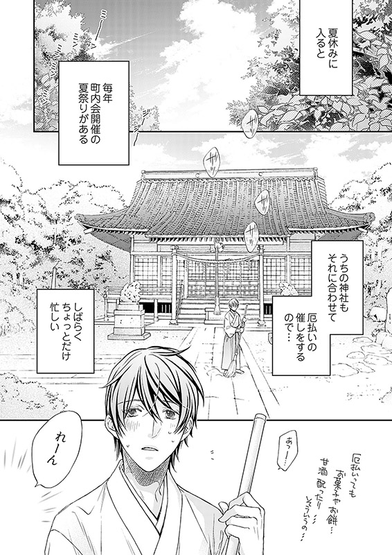 どうしてオレを呼ぶの?君は誰――?家が神社ということもあり、何かと“憑きやすい”体質のオレ。そんな時、助けてくれるのが幼馴染の大樹。大樹には霊感みたいなものがあるらしく、オレの憑き物をいつも祓ってくれる。大切な友達だし、有難い存在だ。ちょっとだけ、キョリ感が近すぎるところがあるけど…。ある日、大学から帰宅する途中で、いつもよりヤバイ“何か”に襲われそうになり身動きできずにいると、突然、オレを呼ぶ声とともに守ってくれた新しい“何か”。それは明らかに人間ではなくて、しかも初めて会ったはずなのに、何故か心配そうに見つめながらオレの名を呼び――…!? 【フィカス】