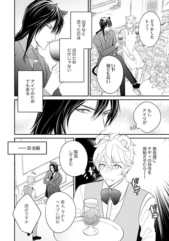 そんなレンに憧れて夜の世界に飛び込んだクマ獣人のマオは、実は「テディ」という希少な種族であるという秘密を抱えていた。「テディ」の特性は、無自覚に癒しオーラを振りまくこと。